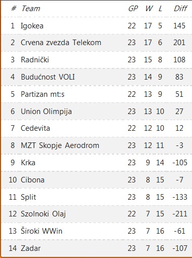În momentul se față Igokea, care joacă împotriva lui Szolnok în cursul serii de luni (04.03), meci care va încheiat runda a 23-a, are 17-5 la general. Steaua Roșie are 17-6. Astfel, ambele vor avea cel puțin trei victorii mai multe decât locul 5 după încheierea rundei a 23-a (adică cu trei etape înaintea încheierii sezonului regulat). În aceste condiții, chiar dacă vor pierde toate meciurile rămase de disputat, ambele nu au cum sa rateze accesul la turneul final. De asemenea, în majoritatea cazurilor posibile, atât Igokea cât și Steaua Roșie au avantajul rezultatelor directe cu celelalte pretendente la un loc la turneul final, e vorba despre Radnicki (15-8), Buducnost (14-9) și Partizan Belgrad (13-9, va juca în cursul serii de duminică, împotriva Cedevitei). Nicio altă echipă nu mai poate ajunge din urmă pe Igokea și Steaua Roșie.
