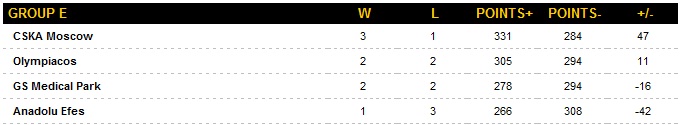 Seria perfectă a lui CSKA Moscova se termină la 13 victorii consecutive, obținute în actuala ediție a Euroligii masculine. Rușii au 3-1 în faza a doua menținându-se pe prima poziție a Grupei E.