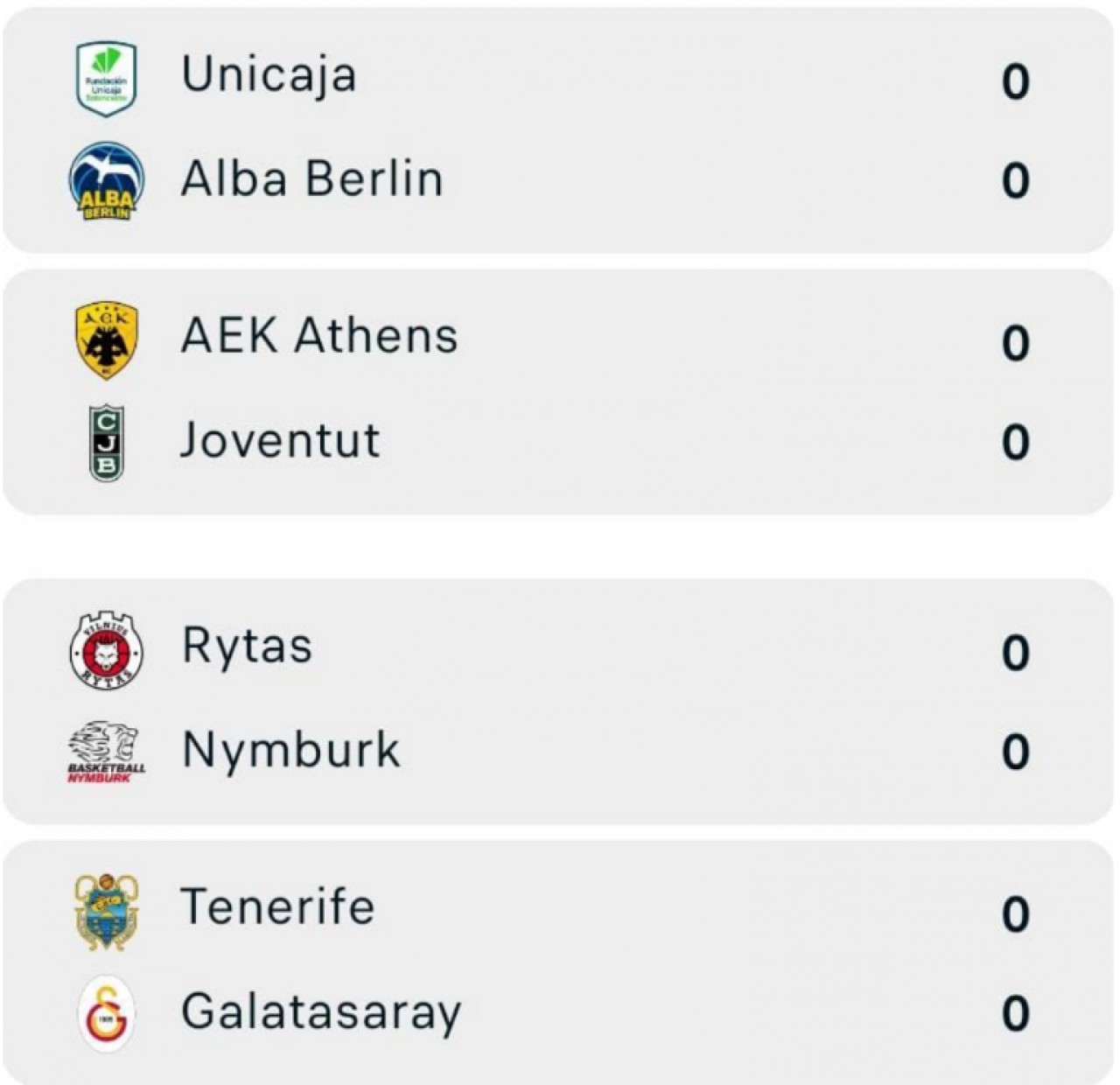 Campioana en-titre, Unicaja, va înfrunta ALBA Berlin într-un duel de top, în timp ce AEK, neînvinsă până acum, se duelează cu experimentata Joventut. În cealaltă parte a tabloului, Tenerife întâlnește Galatasaray, iar Rytas joacă împotriva lui Nymburk.