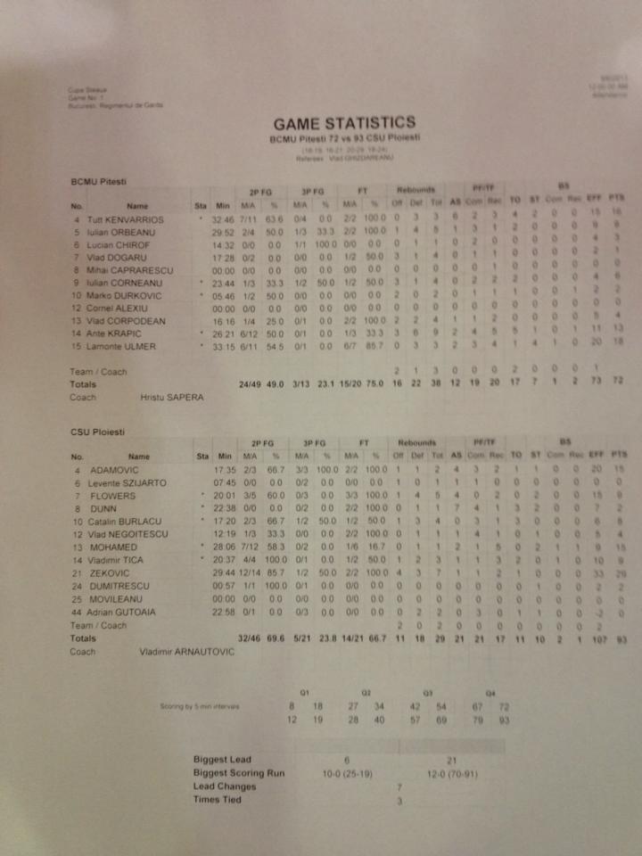 Cupa Steaua - Statistica meciului BCM U Pitești vs CSU Ploiești, scor 72-93