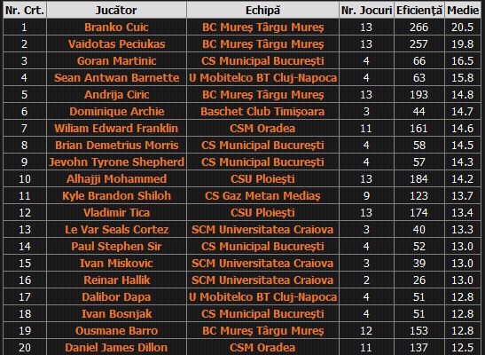 La total, podiumul a fost completat de către Andrija Ciric, autor a 193 puncte de eficiență pentru un indice de 14.8 pe meci.