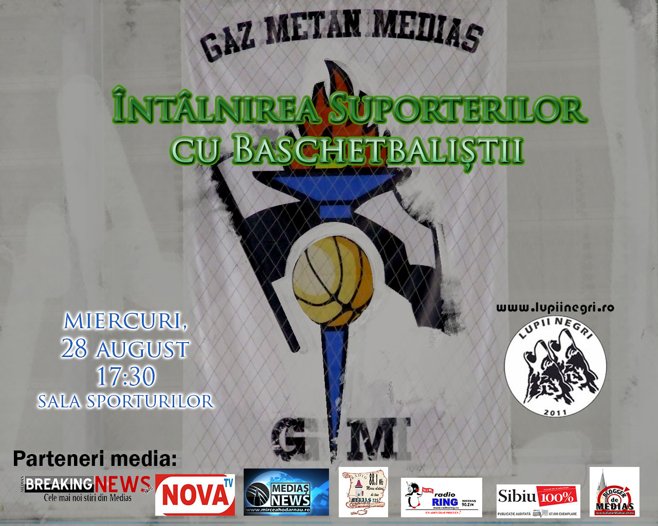 Asociația Fan Club Lupii Negri organizează, miercuri, 28 august, cu începere de la ora 17:30, întâlnirea suporterilor echipei de baschet Gaz Metan Mediaș cu componenții lotului și stafful tehnic pentru sezonul competițional 2013/14.